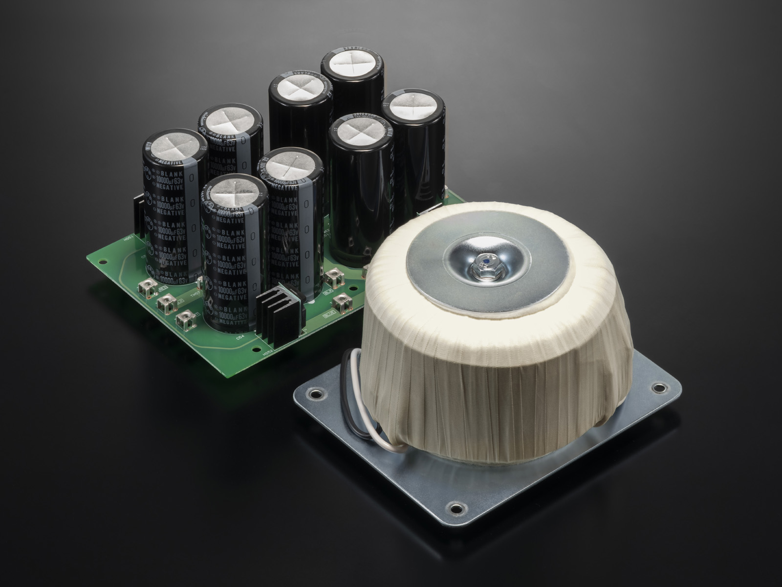 - Kondensatory niestandardowe „klasy Grandioso”: 10 000 μF × 4 szt. na kanał