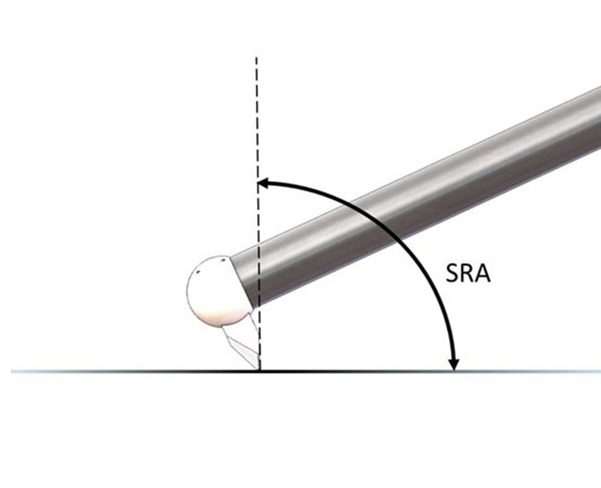 Kąt natarcia trzpienia (SRA - patrz rysunek) jest bardzo istotny dla działania trzpienia Replicant 100, a długa powierzchnia styku (ostra krawędź) diamentu powinna być niemal prostopadła do powierzchni płyty, patrząc z boku. Kąt pomiędzy powierzchnią płyty a wspornikiem jest bliski 23 stopni, gdy SRA wynosi 90 stopni.
