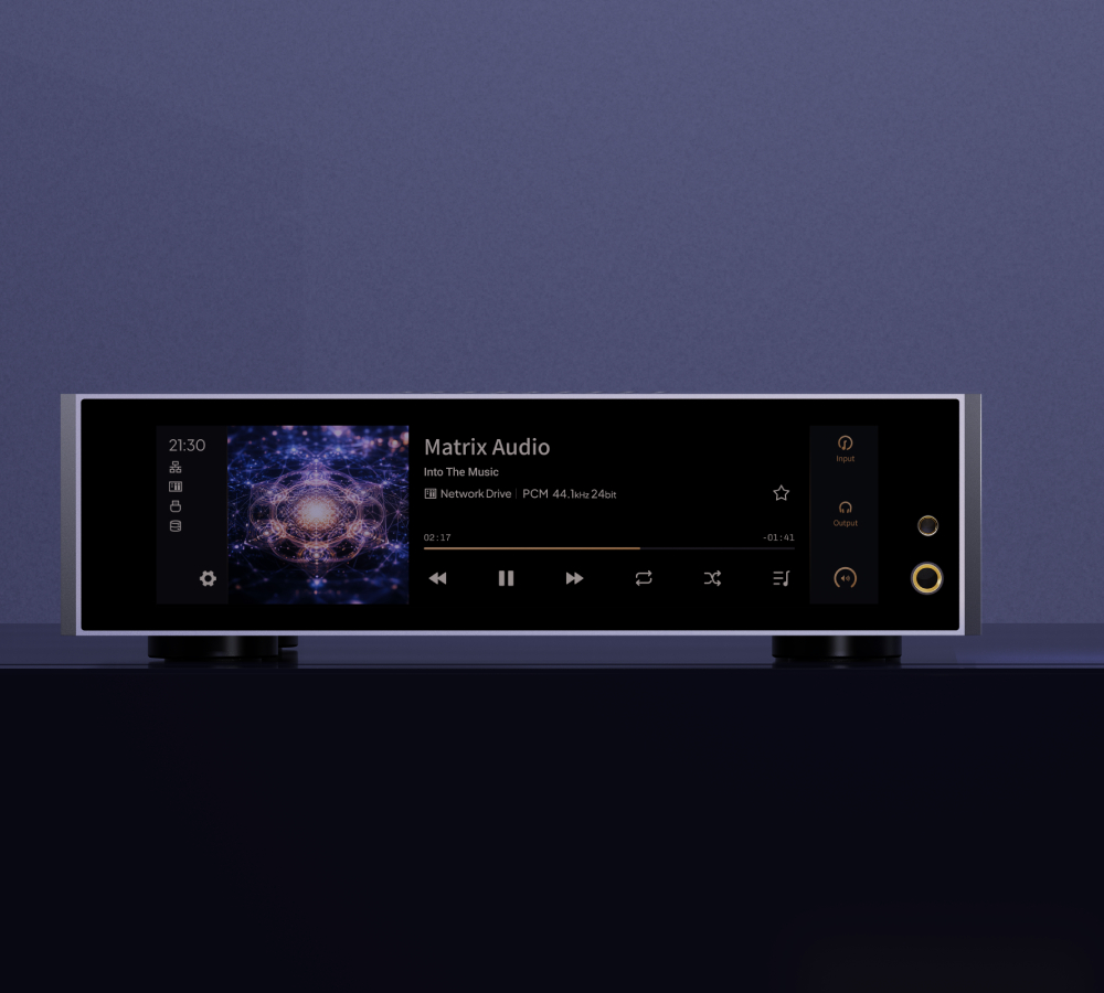 Dzięki platformie sprzętowej Hi-Fi streaming z serii Matrix Audio M, TS-1 zapewnia znaczący skok wydajności. Ulepszony wyświetlacz i stale rozwijany system MA Player Hi-Fi Streaming OS, w połączeniu z aplikacją MA Remote, zapewniają bezproblemową kompatybilność z urządzeniami iOS i Android. Niezależnie od tego, czy używasz smartfona, czy tabletu, doświadczysz jako użytkownik bezproblemowego, płynnego i intuicyjnego korzystania z urządzenia.