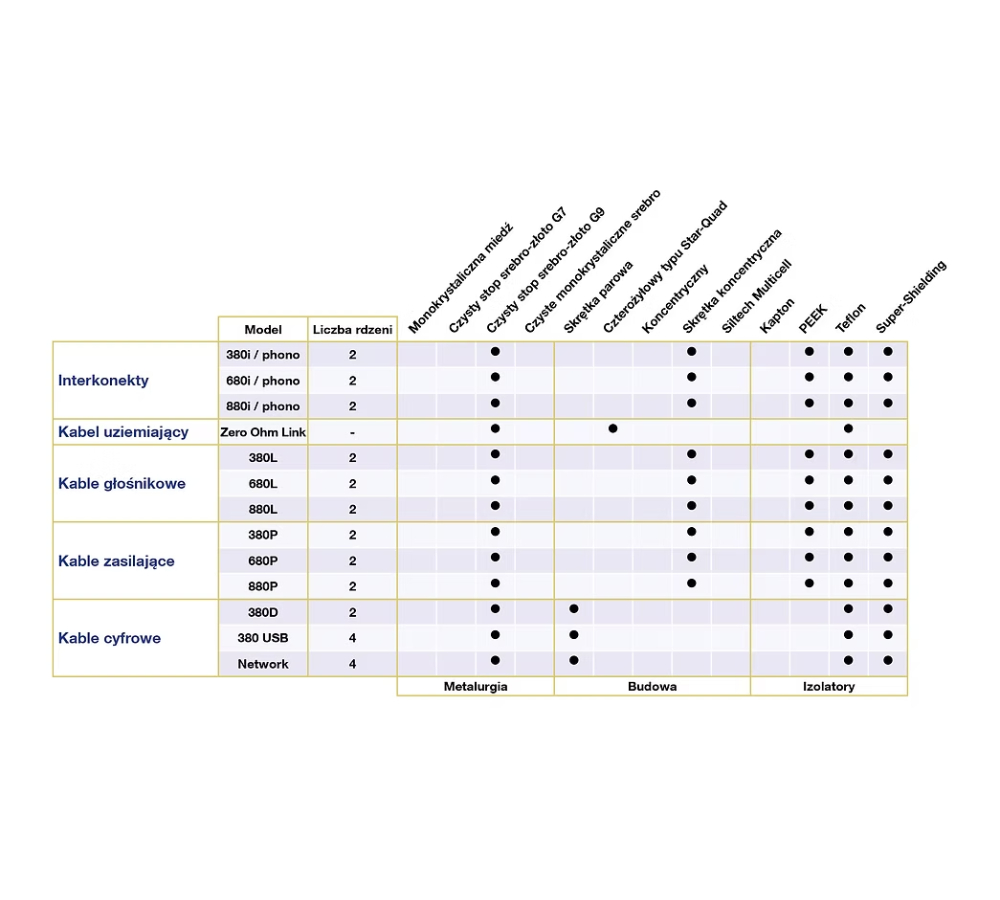 Przewody w serii Classic Legend podzielono na trzy podgrupy: 380, 680 i 880. W każdej z nich proponujemy kable sygnałowe, głośnikowe i zasilające. Są one zbudowane z wykorzystaniem najnowszej hybrydy srebra i złota G9, rewolucyjnej trójwarstwowej izolacji i ulepszonego ekranowania chroniącego przed zakłóceniami zewnętrznymi. Składniki te odpowiadają za znaczącą poprawę jakości dźwięku w stosunku do naszych dotychczasowych modeli tej klasy, zapewniając niespotykaną otwartość, równowagę tonalną, przyjemną gładkość i niesamowite wrażenia przestrzenne. Dzięki zastosowaniu technologii znanych z flagowych modeli serii królewskiej, parametry pomiarowe Classic Legend są aż aż 2.5-krotnie lepsze niż w odpowiadających im przewodach Classic Anniversary. Mówi się, że legendy są ponadczasowe – mamy nadzieję, że właśnie tak będzie w przypadku modeli z serii Classic Legend. Zaprojektowaliśmy ją jako najlepszą możliwą inwestycję w doskonałe brzmienie na długie lata.